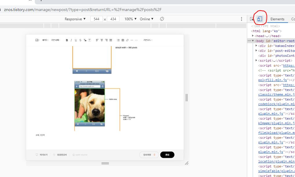 이것저것 사이즈를 시험해 보고 싶다면 F12를 누르고 아래 빨간동그라미 친 버튼을 누르면 모바일 상에서 보여지는 화면을 확인 할 수 있다.