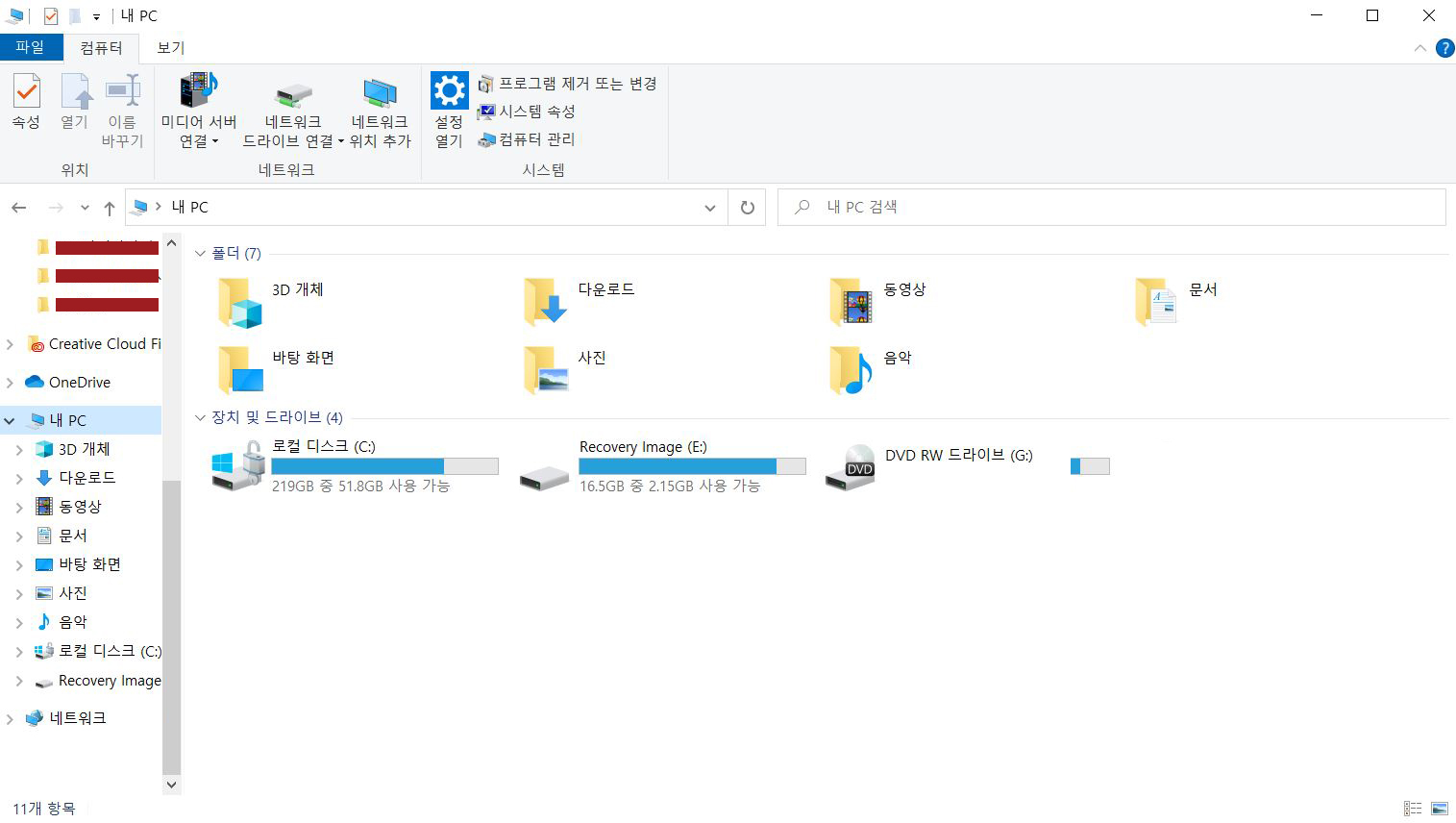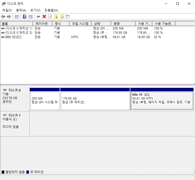 어제까지만 해도 당연히 있던 D드라이브가 갑자기 사라졌다. 밤 사이에 딱히 뭘 설치하거나 건드린게 없는데 어찌된 영문인지를 몰라 열심히 구글 검색을 했다