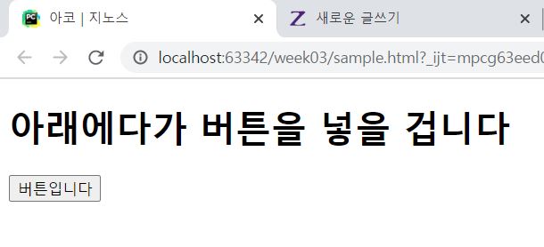 이 코드를 처음에 입력했던 <button>~</button>코드와 바꿔넣고 실행시켜보자