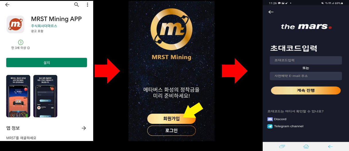 구글플레이에서 MRST Minging APP를 검색하고 설치를 한 뒤 회원가입을 한다