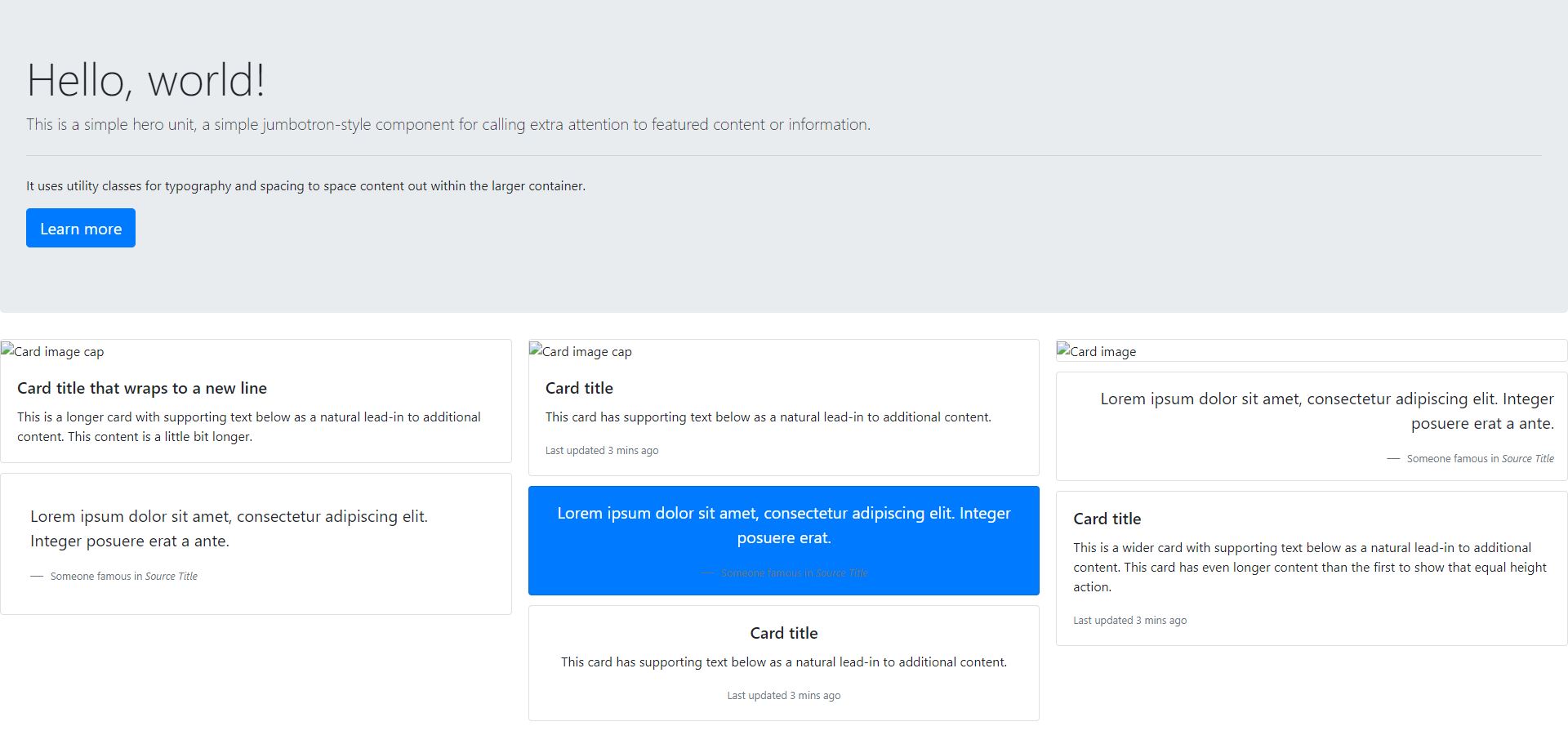 <p class="card-text"><small class="text-muted">Last updated 3 mins ago</small></p>