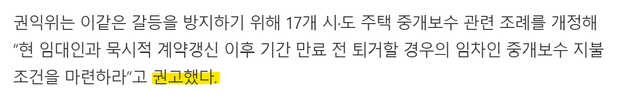 국토교통부에 문의를 했을 때도 원칙은 임대인과 새로운 임차인이 복비를 내는 것으로 되어있으나 협의사항이 있다면 그걸 우선으로 따른다고 답변을 받았다. 즉, 묵시적 계약갱신이 되더라도 재계약시에 임차인과 2년 이내에 세입자의 사정으로 이사를 해야 할 시 복비를 어떻게 하겠다는 내용을 미리 말하면 된다.