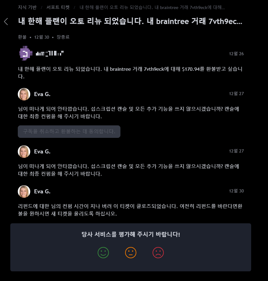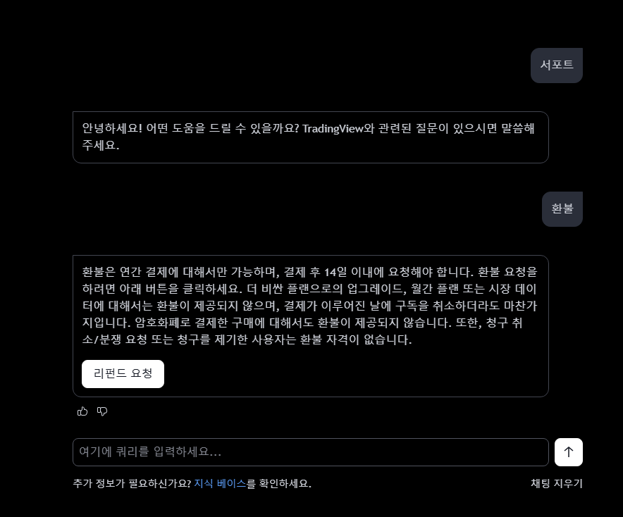 여기서 서포트를 입력하고 환불을 검색하면 저렇게 리펀드 요청이 나온다