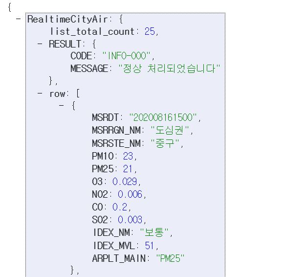 <h2> 서울시 OpenAPI(실시간 대기환경 정보)를 이용하기</h2>