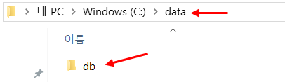 1. C드라이브에, 그림과 같이 data 라는 폴더를 만들고, 그 안에 db 라는 폴더를 만듭니다.
