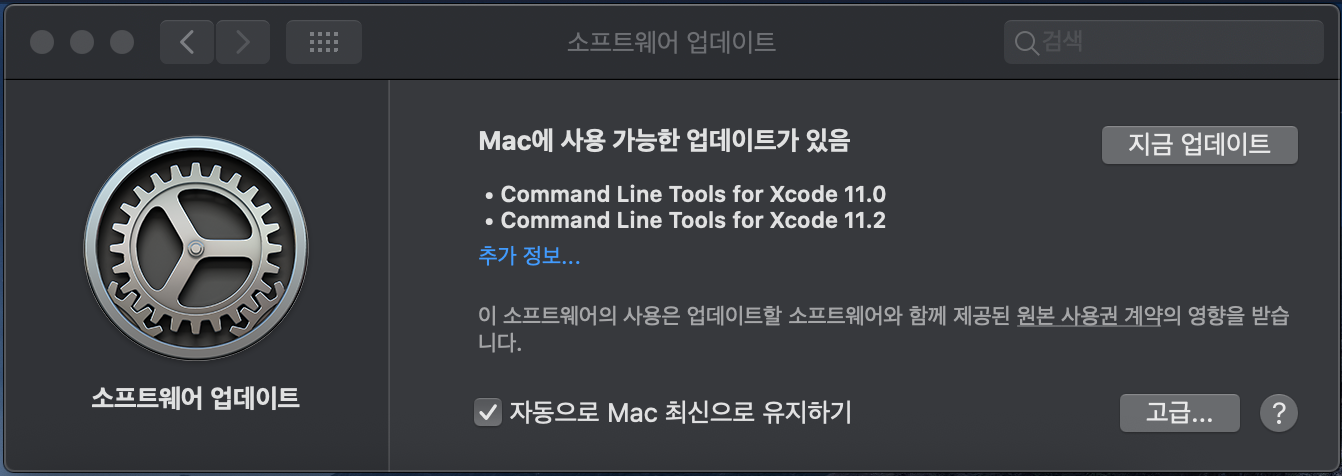 엔터 누른 후에 만약 맥 소프트웨어(Xcode) 업데이트 알림이 뜨면 업데이트를 해주세요.