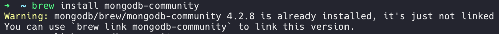 Warning: 으로 시작해서 brew link mongodb-community 같은 내용이 보이면 터미널창에 아래 명령어를 입력해주시면 됩니다.