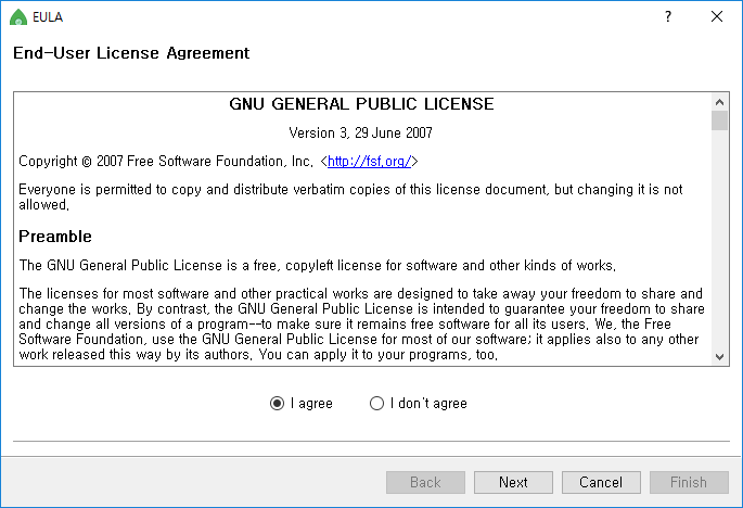 라이센스에 대한 내용에 I agree를 선택 후 Next